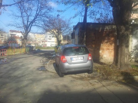 Здравейте, от два дни този автомобил е паркирал по този начин - върху тротоара, на пешеходна пътека, препречвайки пътя на пешеходците. В района има и доста възрастни хора и майки с колички, който излагат и себе си и децата си на опасност, слизайки на пътя, където колите си минават спокойно, с нормална скорост над 40-50 км/ч.