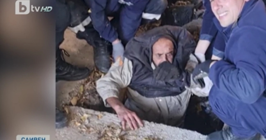 След подаден сигнал от живеещи в централната част на Сливен, 57-годишният мъж е изваден при съвместна спасителна операция на пожарната и полицията.