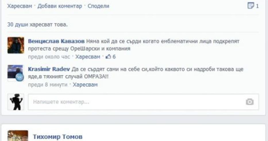 Дори и да става въпрос за шега, приятелите на Вълков във "Фейсбук" и привърженици на протестите коментират събитието съвсем сериозно. "Браво Лили! Ти си родолюбец! Няма да предадеш българите, които те обичат!", "Е, след като и баба Лили е с нас, просто не виждам как ще се задържи правителството", "Не знам кви опорни точки ще измислят срещу нея и коя баба ще ги предпочете тях на Позитано пред нея", "Няма кой да се сърди когато емблематични лица подкрепят протеста срещу Орешарски и компания", са само част от коментарите под информацията на страницата на Вълков.