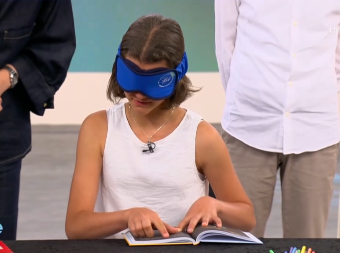 Те демонстрираха, как без да гледат могат да оцветяват картинка в точните цветове, да рисуват копие на нещо, нарисувано от друг и дори да четат непознат текст. Демонстрацията стъписа панелистите, които останаха поразени от поразени от видяното.