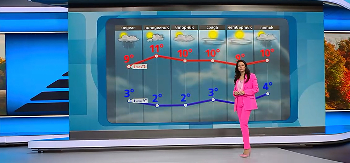 Новата седмица ще започне с повече слънчеви часове. Сутрин ще бъде студено, със стойности около нула градуса, а максималните ще достигат 10 – 15. От сряда в низините котловините ще има мъгли, които на места ще бъдат по-трайни, а повече слънце се очаква в планините. Дневните температури слабо ще се понижат, обясни Деница Стоянова.