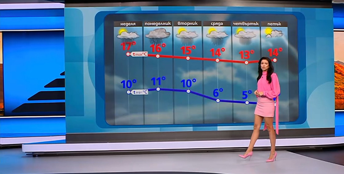 В сряда и четвъртък ще вали на по-малко места и облаците ще започнат да намаляват, но с умерен северозападен вятър ще нахлува по-хладен въздух. От петък ще бъде предимно слънчево. Сутрин обаче ще бъде хладно, с условия за кратки мъгли и слани в низините котловините, каза Деница Стоянова.