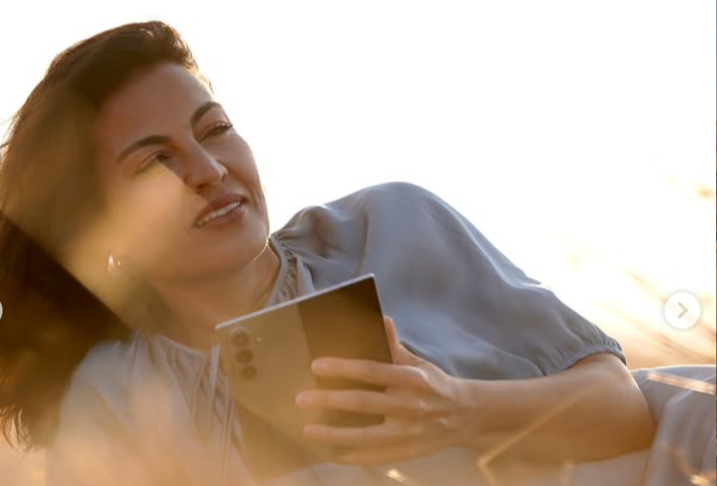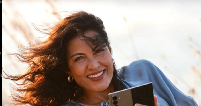 Сесията на Стоянова е рекламна, като тя много старателно изтъква придимствата на конкретен модел телефон. Това е обаче май не интересува много феновете, които изтъкват за пореден път красотата и чара на бившата водеща, преквалифицирала се в преподавател по публично говорене.