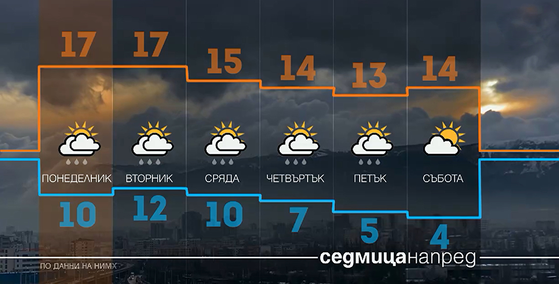 Към средата на следващата седмица температурите няма да се повишават значително. Те ще бъдат в интервала 12 до към максимум 17 градуса, обясни Василковски.