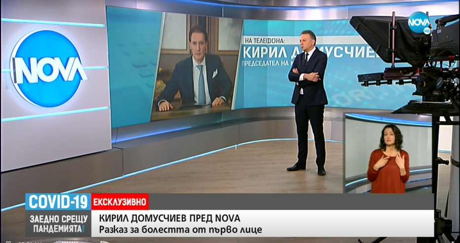 Кирил Домусчиев даде първото си официално телевизионно интервю в ефира на "Нова,", която е негова собственост.