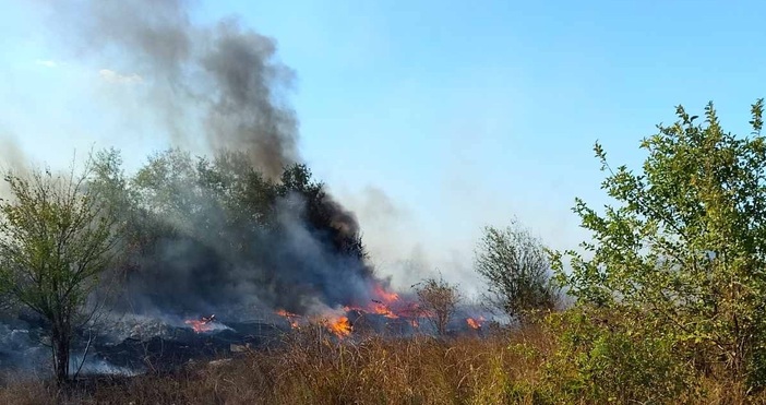 В момента четири пожарни автомобила от Девня, Варна и Провадия и екип от доброволното формирование се опитват да локализират огнището на пожара.
