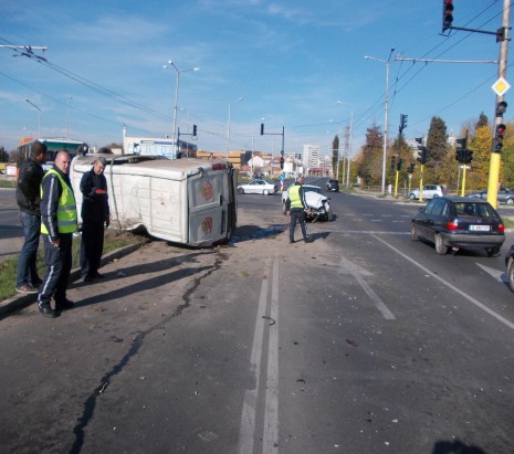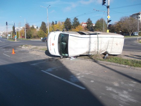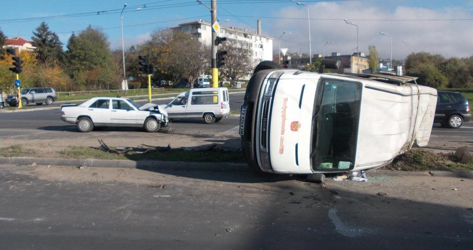 Микробусът се обръща на една старана и ляга в зелената разделителна ивица на булеварда, а мерцедесът е с жестоко огъната предница. Въпреки силния удар обаче нито един от шофьорите не е пострадал. „За щастие всички сме живи и здрави, но седим тук часове наред и никой не идва на мястото на инцидента“, разказа Петров.