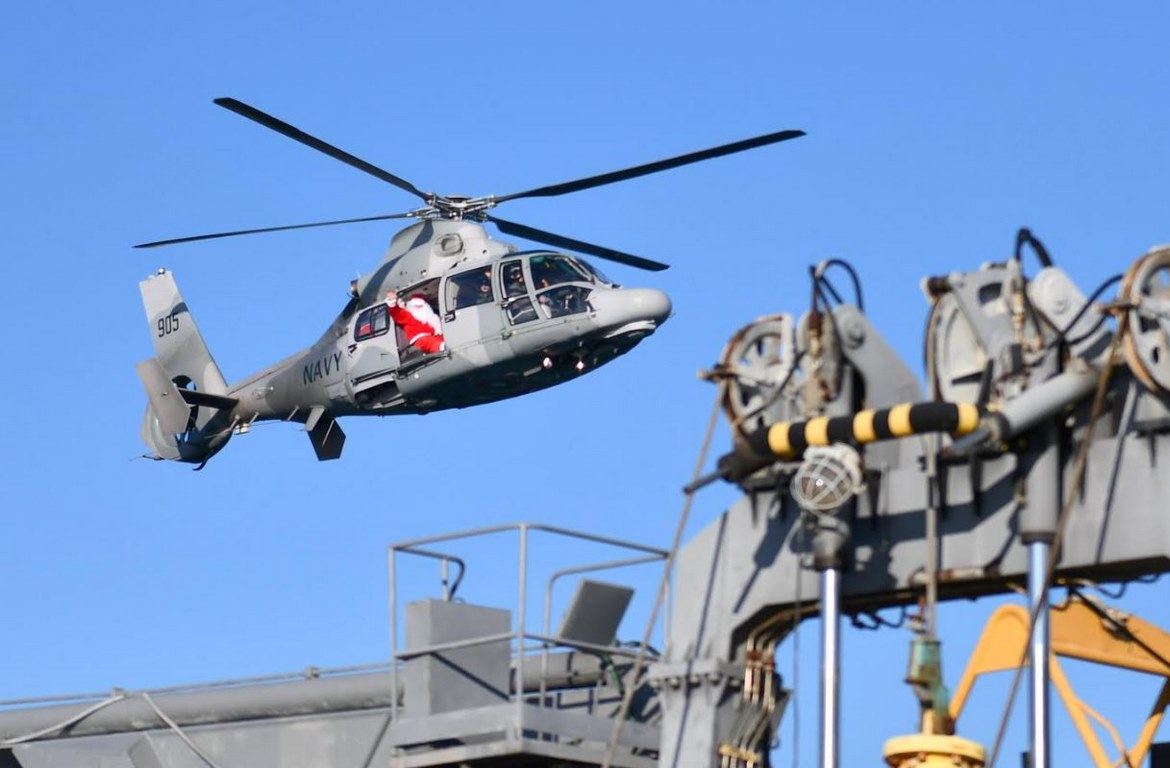 Добрият старец помаха на повече от 190 деца на военнослужещи и цивилни служители от военните формирования във Варненския гарнизон. Вертолетът се приземи на военния пирс и дългоочакваните гости бяха обградени от нетърпеливите малчугани. След това заедно с техните родители величествено преминаха дългия път до празнично украсената зала.