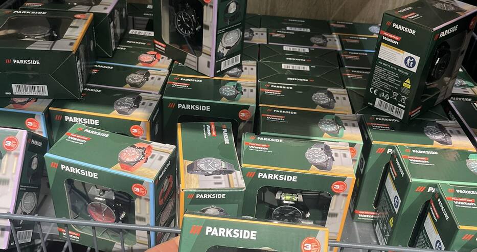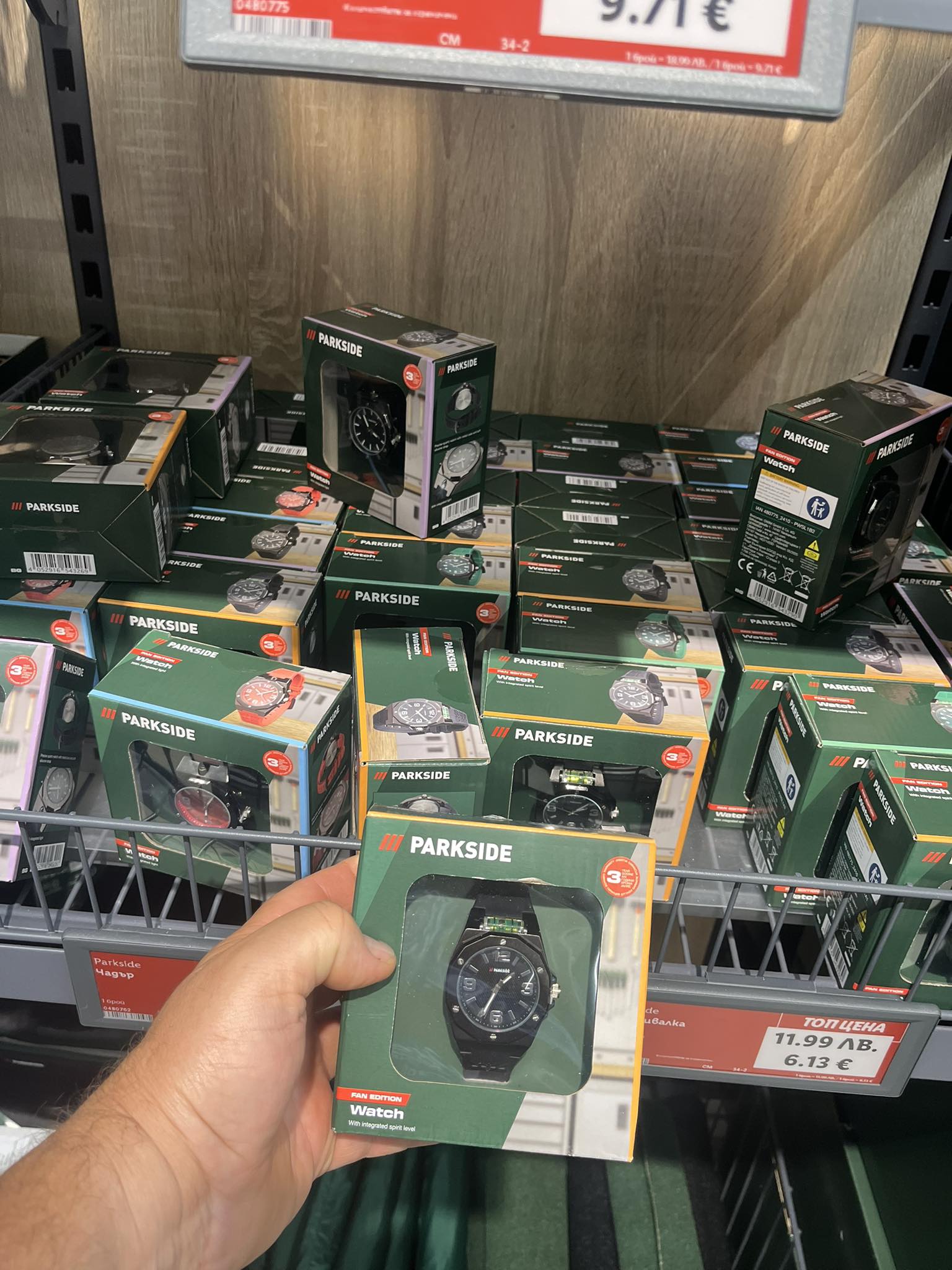 Клиент на Лидл показва часовниците от марката "Парксайд".
