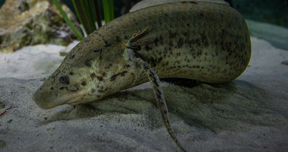 Африканската двудишаща риба (Protopterus annectens) е сладководна риба, разпространена в страните южно от Сахара, пише 19 минути.