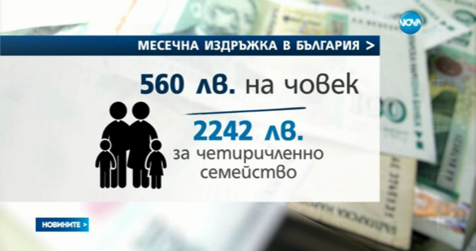 За нормалния живот на едно четиричленно семейство са нужни 2242 лв. месечно, за да покрие разходите си за храна, жилище, здраве и образование, съобщиха по bTV.