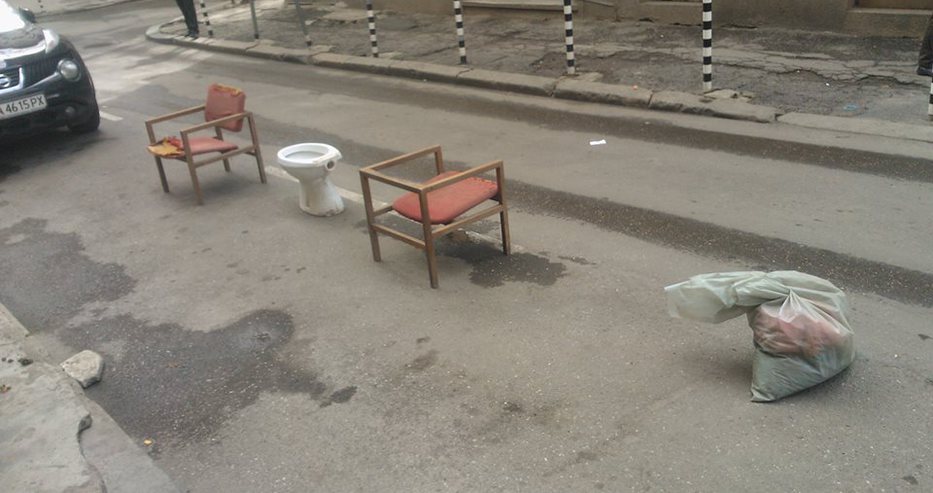 Няколко стари стола, чувал с боклуци и за по - сигурно...тоалетна чиния.