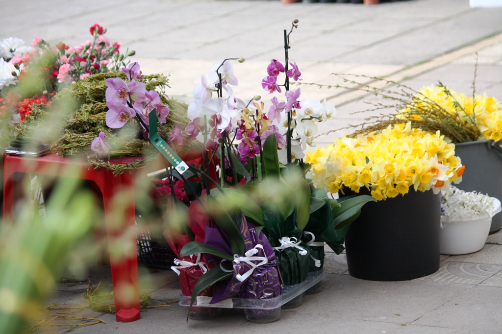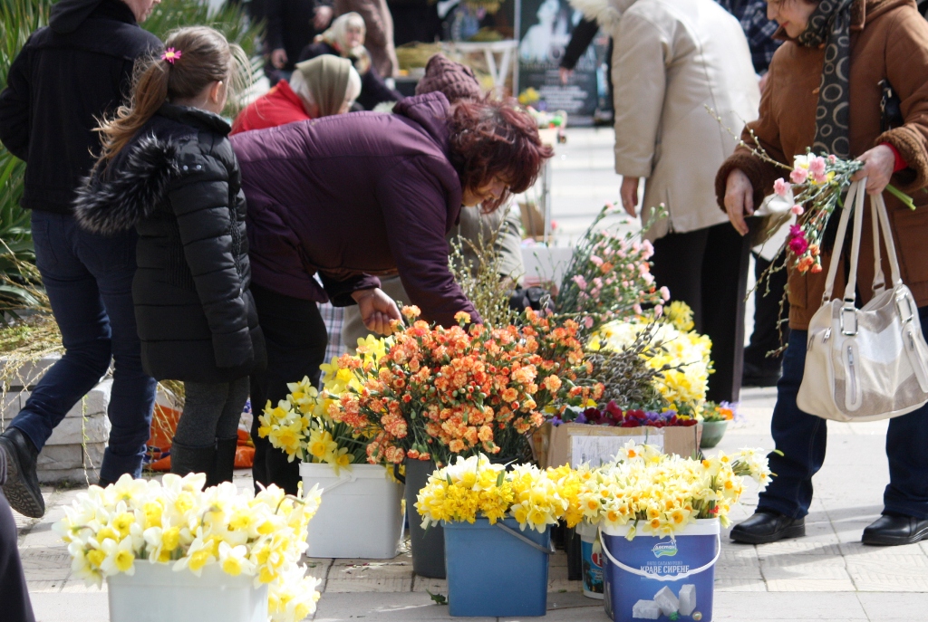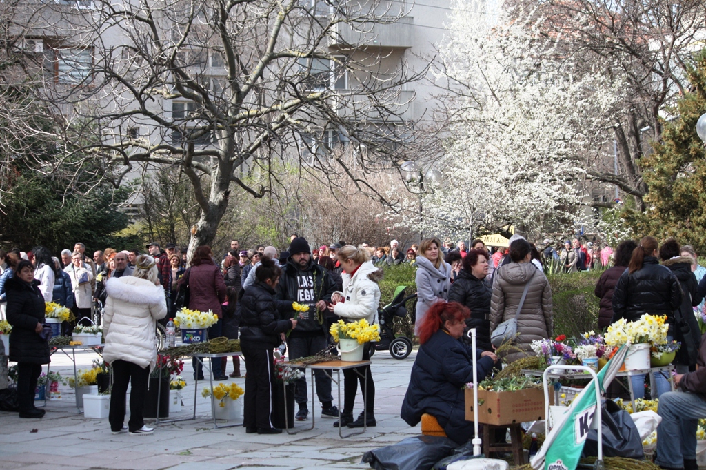 Освен голямо разнообразие от цветя – от традиционните нарциси до екзотичните орхидеи, търговците предлагат и различни тематични за предстоящия Великден украси.