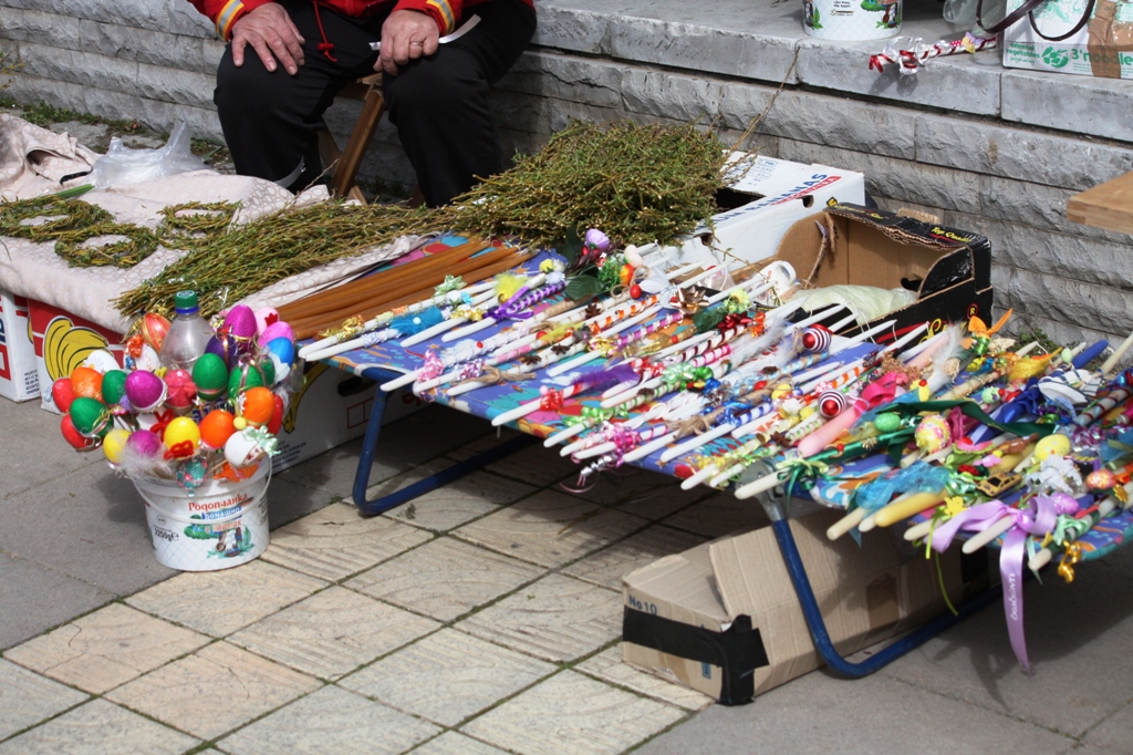 В днешната ветровита варненска неделя пред катедралата, а и пред останалите храмове в града тече усилена търговия.