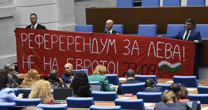 Това стана по време на днешните дебати относно искането на президента за произвеждане на национален референдум с въпрос: "Съгласни ли сте България да въведе европейската валута „евро“ през 2026 г.?“. Парламентът отхвърли искането на държавния глава, предаде Новини.бг