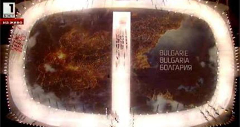 Картата на „по-голямата“ България се появи на телевизионния екран по време на преминаването на българската олимпийска делегация.