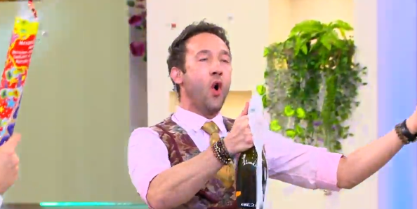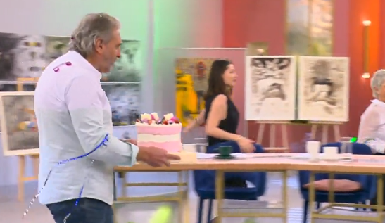Днес предаването "На кафе" започна с празнична песен, конфети, розова торта и шампанско. Поводът - водещата Гала е рожденичка.