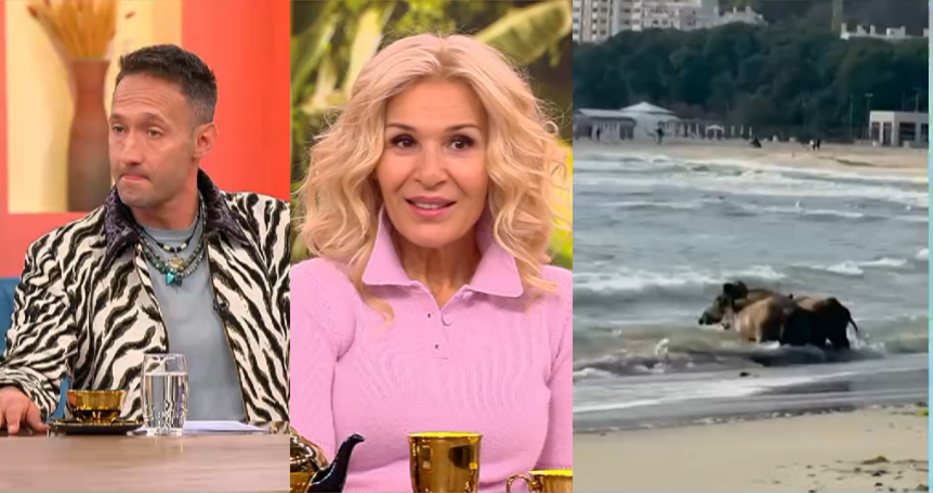Морското приключение на семейство диви прасета на Аспаруховия плаж във Варна стигна до панела на Гала. Кадрите от тяхното къпане в морето, бяха представени от Дарко Ангелов, като в началото реакцията на колегите му беше смесена.