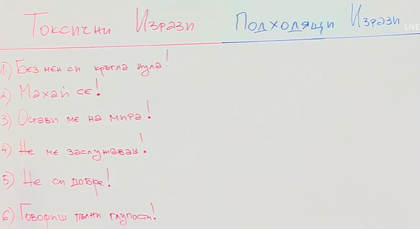 Посочила съм най-често използваните изрази. Например "Без мен си кръгла нула", посочи тя.