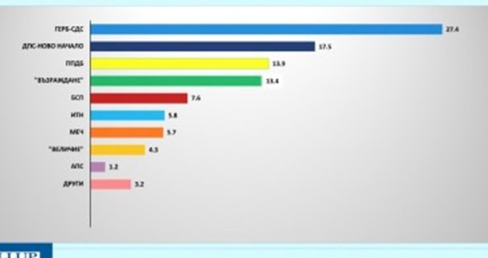 Непосредствено след тях, с минимална разлика, е "Възраждане" – 13,4%, вероятно вследствие на отшумяването на пиковата активност на формацията по теми като предстоящото въвеждане на еврото и геополитическите полемики, допълват от "Галъп".