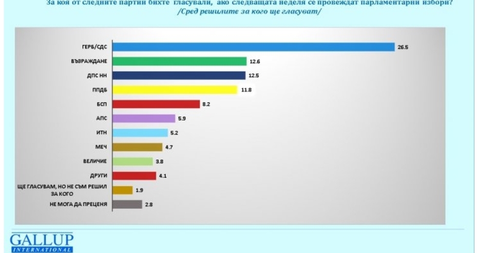 Галъп: При избори днес ГЕРБ първи, БСП вдига малко проценти