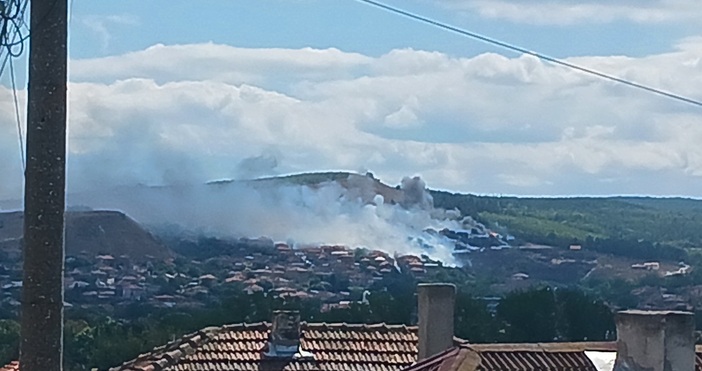 Огънят е тръгнал от сухи треви и храсти, но заради силния вятър е тръгнал и към две къщи.
