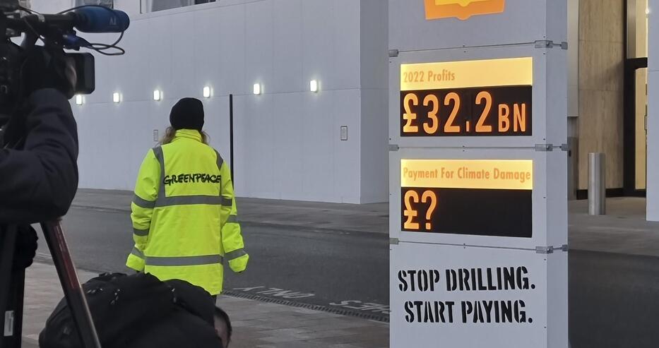 "Спрете да сондирате, започнете да плащате!" призовава Грийнпис, като обвиняват компанията, че не отделя средства за екология, предаде Булфото.
