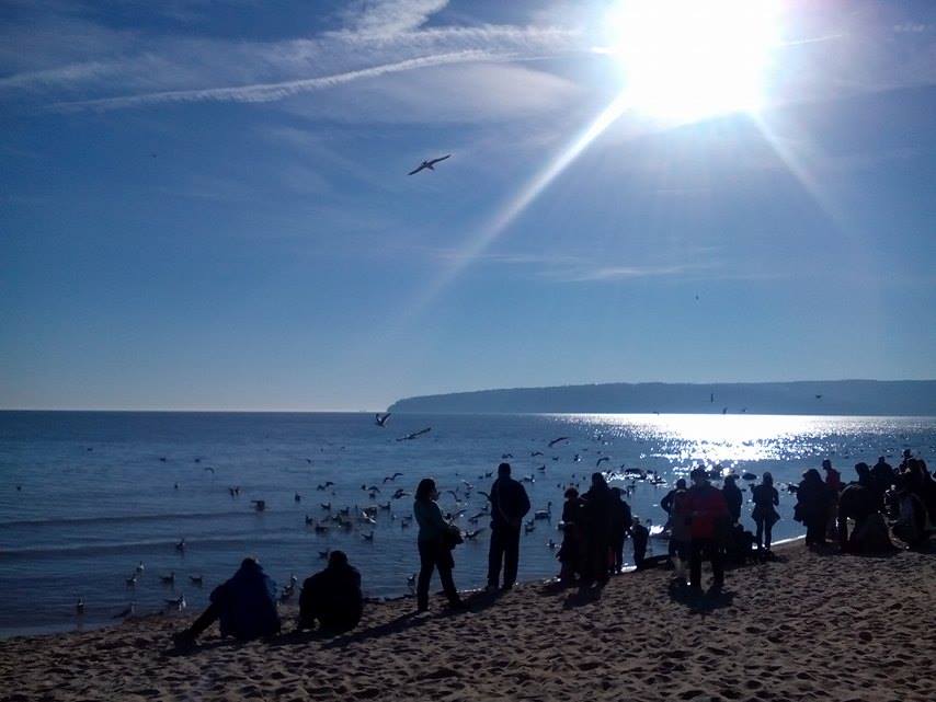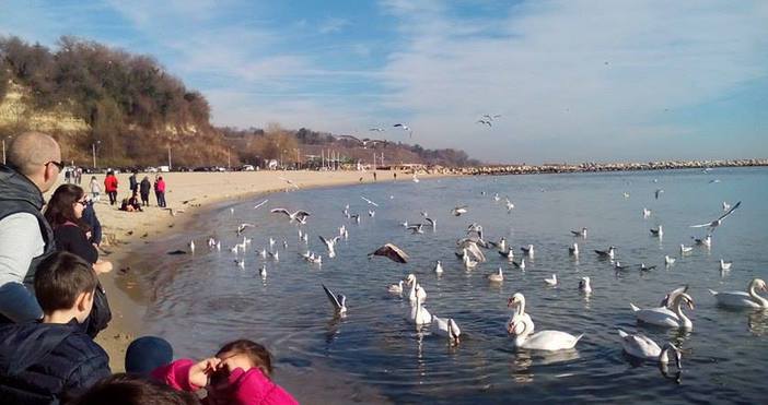 И днес топлото време накара варненци да излязат на плажа. Там за пореден ден малки и големи се радваха на десетките лебеди и всякакви други морски птици.