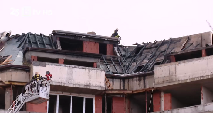 Към момента пет екипа на пожарната продължават със своята мисия да изгасят огъня на покрив на сградата, заяви още репортерът на бТВ.