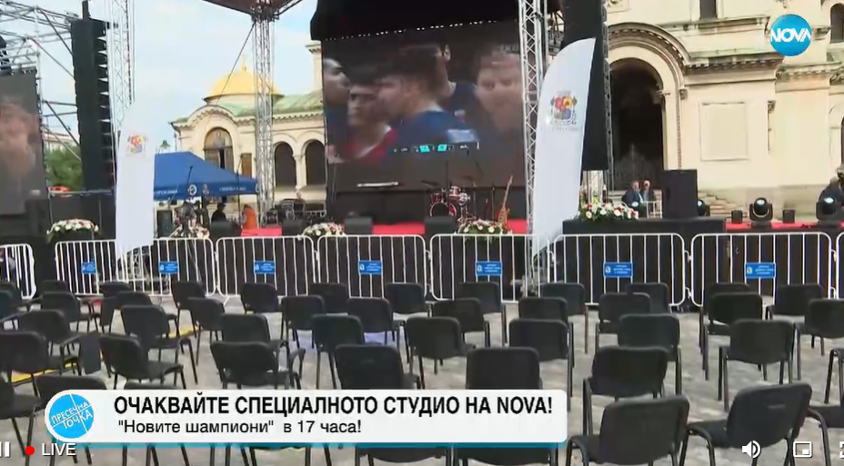 Тук вече се събират хора, въпреки че след около час и половина всъщност нашите волейболисти ще тръгнат на почетна шампионска обиколка. Тя ще започне от площад „Независимост“, за да стигне тук до храм паметника „Свети Александър Невски“, предава от мястото Миа Димитрова.
