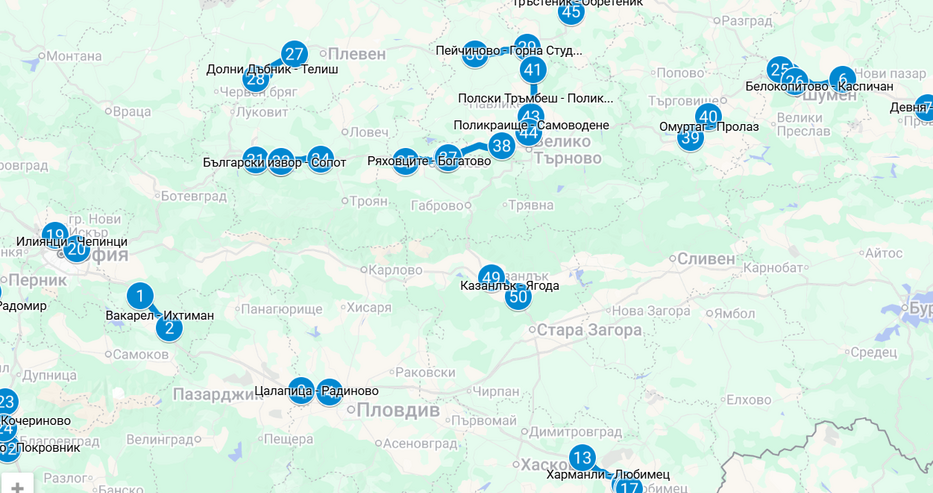 Има карта на всички участъци с контрол на средната скорост