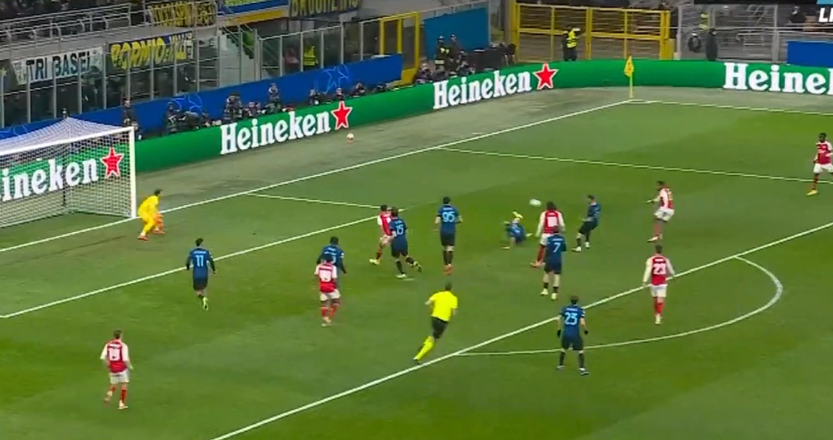 По-добрата игра на футболистите на Микел Артета даде своя резултат още в 11-ата минута след поредното добро разиграване в противниковата половина. Топката бе прехвърлена на няколко пъти между двата фланга, за да бъде вкарана е пеналта, където отново липсваше добро противопоставяне от страна на защитниците на Интер. Юриен Тимбер изненадващо се озова на добра позиция, опита удар, но вместо това кълбото отиде към Габриел Жезус, който демонстрира добър усет и успя да засече в мрежата на Ян Зомер за 0:1.
