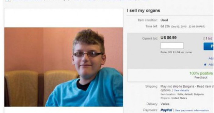 Българската асоциация за невромускулни заболявания (БАНМЗ) стои зад инициативата с фалшивата обява на Александър, публикувана днес (26 ноември 2013) на сайта за онлайн търговия eBay, съобщиха от асоциацията. Както по-рано писахме в eBay беше публикувана смущаваща обява за момче, което продава органите си. Малко по-късно през деня тя беше премахната.
