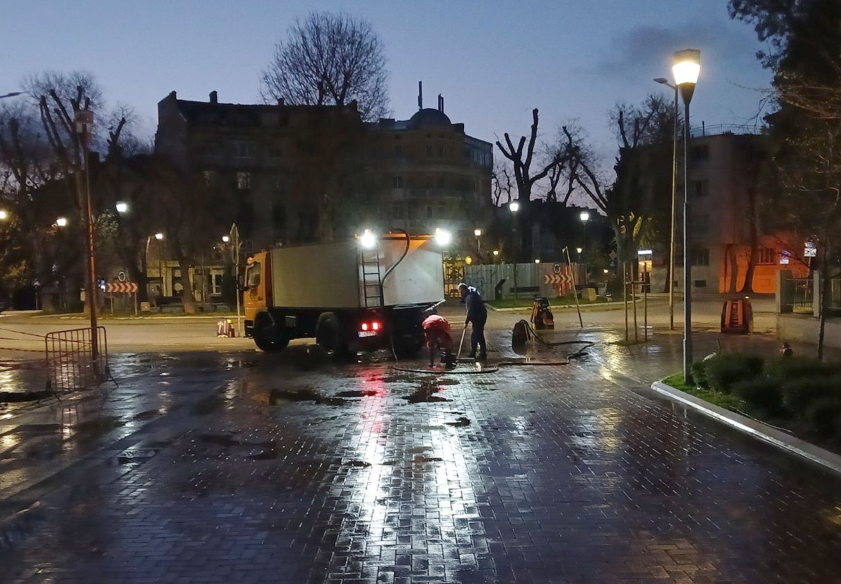 Пешеходната зона в централната градска част на Варна бе измита за предстоящите Великденски празници, съобщиха от дирекция „Екология и опазване на околната среда“. Рано тази сутрин са измити пространствата от пл. „Независимост“ до входа на Морската градина - площад „Антон Новак“, както и пешеходната част на ул. „Михаил Колони“. Измити са и кошчетата за смет външно и площите около тях.