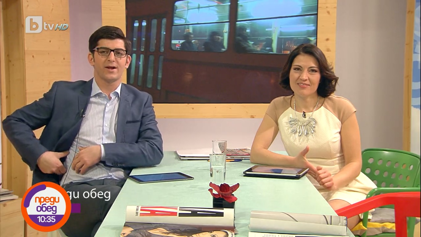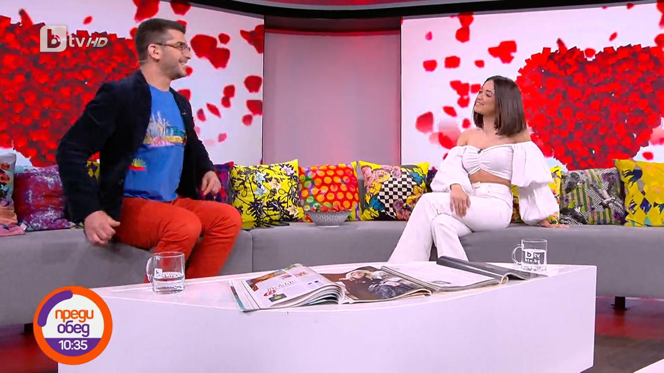 Водещият на "Преди обед" по БТВ Сашо Кадиев направи изненадващо разкритие. Първото си самостоятелно телевизионно интервю в предаването той е направил преди 8 години с Благовеста Бонбонова, която стана известна в последните два месеца с участието си в "Ергенът". Кадри от тогавашната им среща бяха пуснати преди минути в ефира.