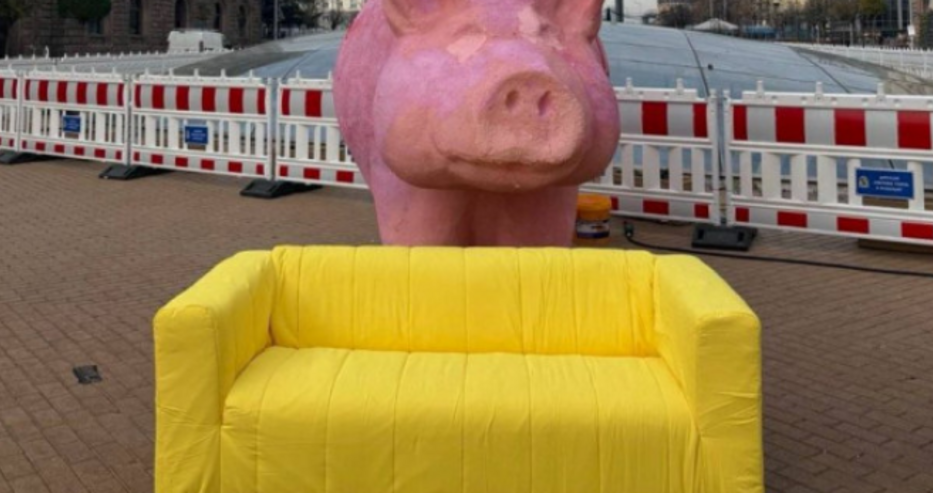 Младежите от ПП поставиха диван пред Ларгото, където е и поставеното преди началото на протестите прасе-касичка, което даде началото на демонстрациите в София.