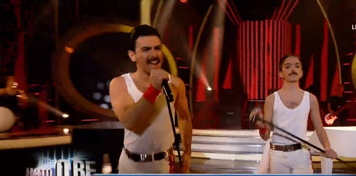 Двамата влязоха в образа на големия Фреди Меркюри. Сред китаристите пък бе и внукът на Маги Халваджиян.