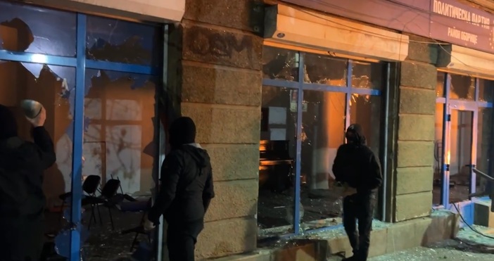 Изпотрошиха централата на ГЕРБ, но се отказаха да я запалят, защото отгоре живеят хора