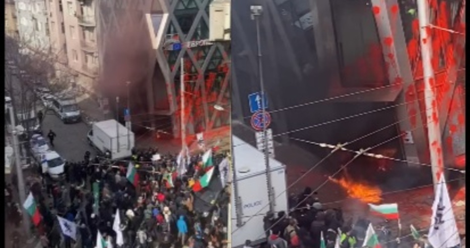 Кадри от високо с вандализацията на сградата на ЕК в София