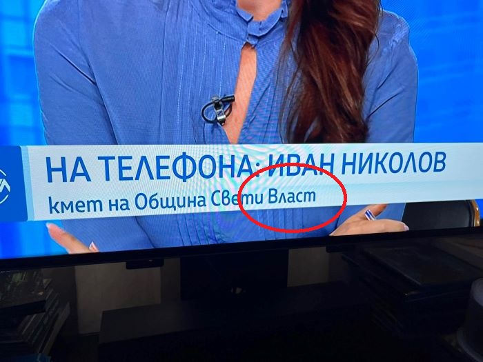 „Властта в България вече си има своя официална община!”, това обяви Къци, като видя, че Свети Влас на екрана на телевизията е изписано като „Свети Власт”.