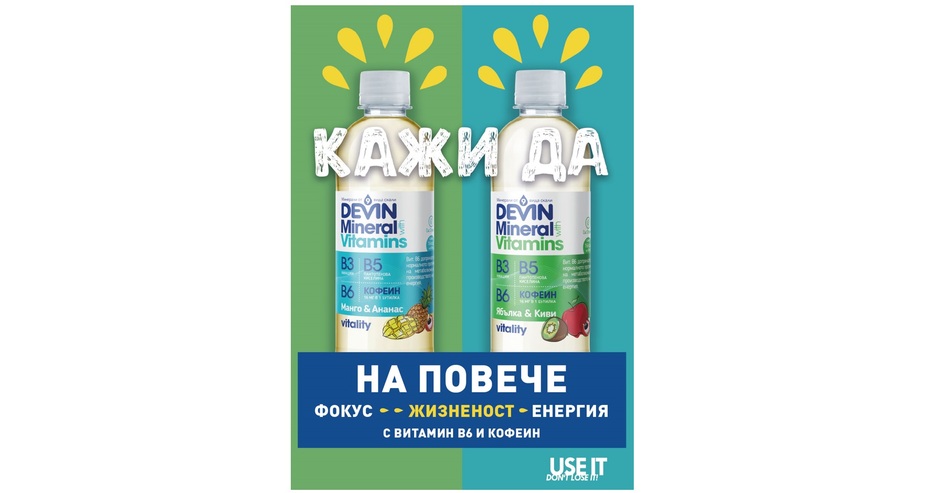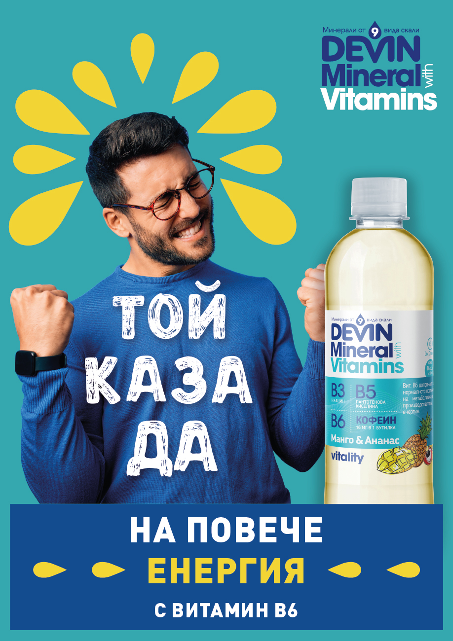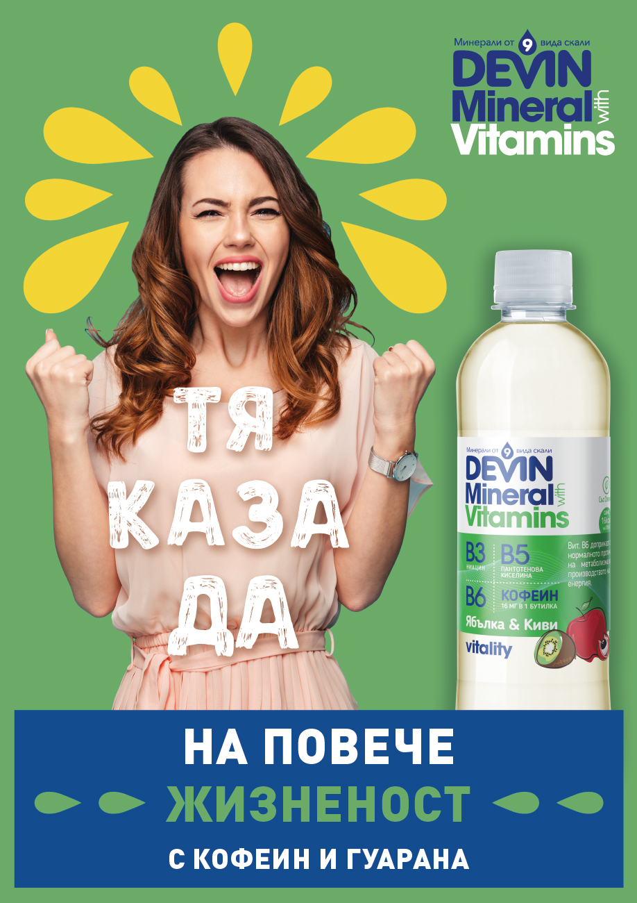 Лидерът на пазара на бутилирана вода в България „Девин“ ЕАД обогатява продуктовата серия под бранда DEVIN Mineral & Vitamins. Като отговор на растящата нужда на потребителите да засилят имунния отговор на тялото и възможността да подобрят настроението и жизнеността си, на пазара вече са и новите напитки, обединени в серията Vitality. Те съчетават познатата нискоминерализирана вода DEVIN с витамин В6, кофеин и гуарана, в два нови вкуса: ябълка с киви и манго с ананас.