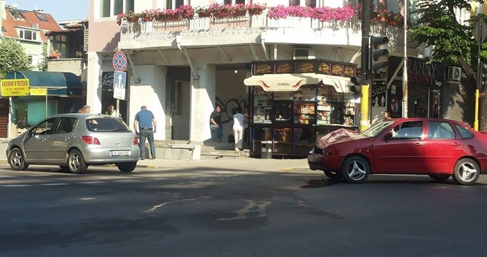 В произшествието няма пострадали хора, а дошлите полицаи устоновяват чия е вината.