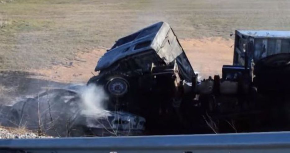 Кола и камион се удариха и избухнаха в пламъци (видео)