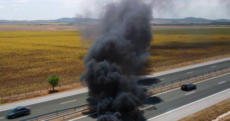 Автомобил се запали в движение на АМ "Тракия". Инцидентът е станал преди минути малко преди разклона за Чирпан, на км 172, в посока Бургас. Към момента пътят не е затворен, районът е задимен.