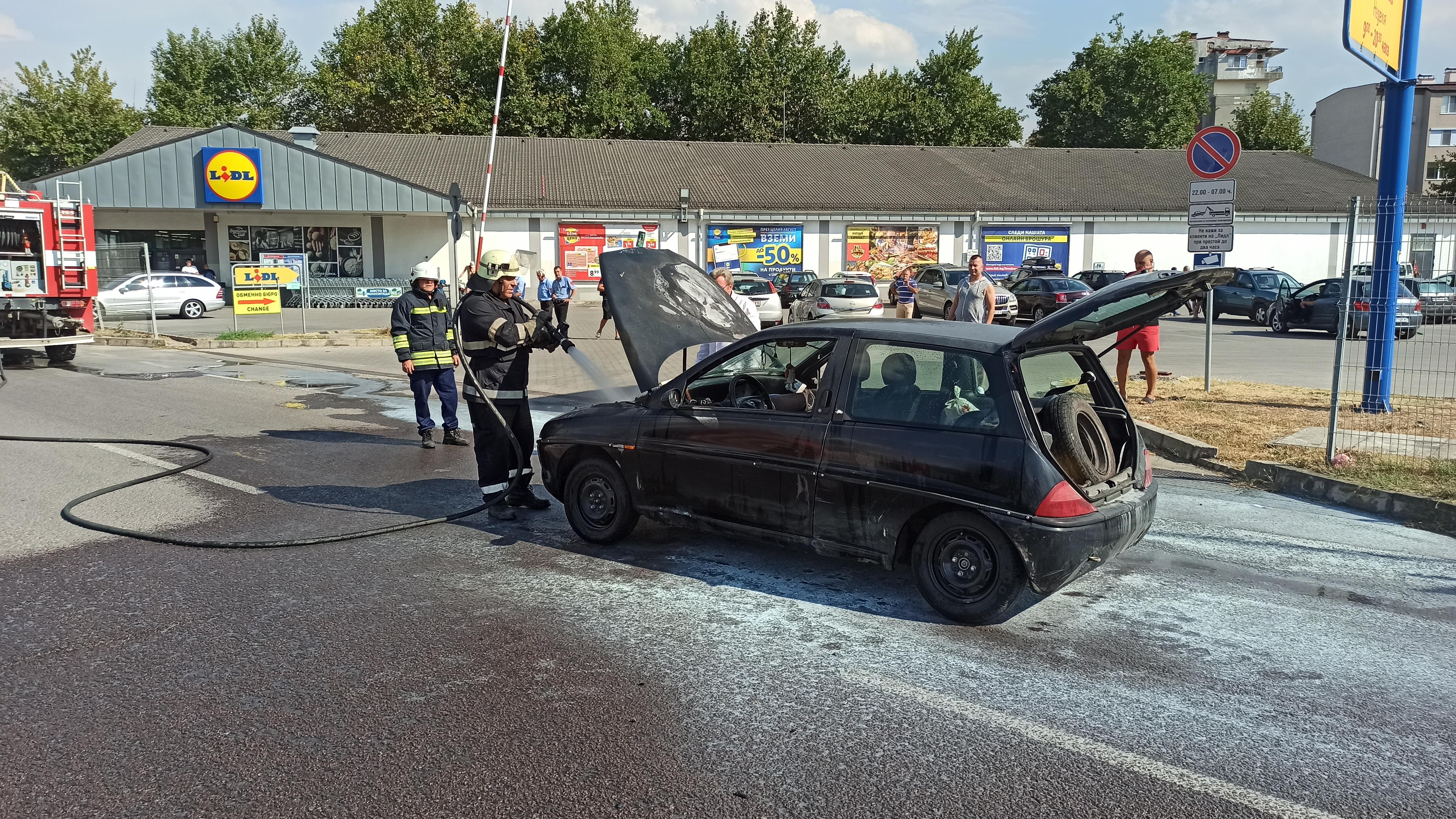 Лек автомобил се запали по време на движение в близост до бензиностанция в Харманли, съобщава Булфото.