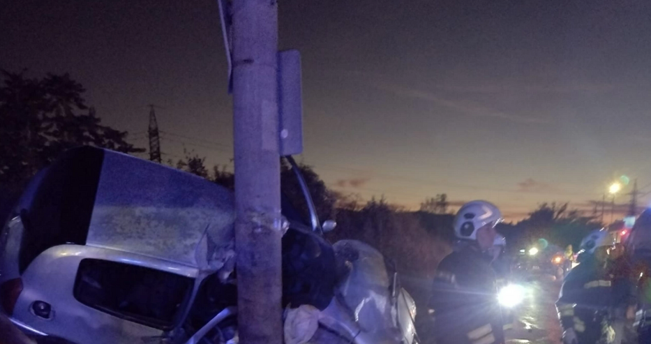 Колата се е врязала в електрически стълб. На място са изпратени екипи на пожарната и полицията, предаде Novini.bg