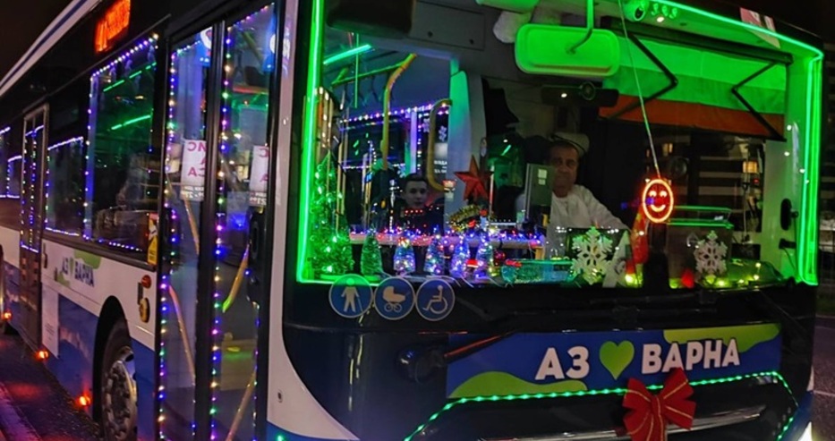 Автобус на градския транспорт на Варна създава допълнително празнично настроение по улиците на града с коледната си украса.