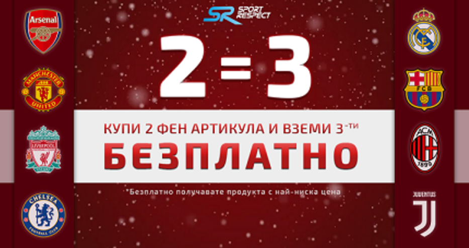 Промоцията "Две плати, три вземи" е подходяща за всички футболни фенове. Ако симпатизираш на някой отбор или познаваш футболен запалянко, това супер предложение, което веднага ще те грабне.