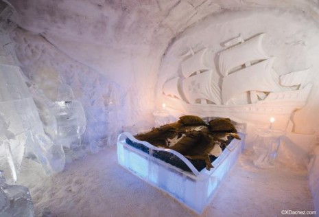 Всички мебели, включително леглата, диваните и баровете са направени от лед. Всичко е покрито с дебели кожи и спални чували, а тоалетната е в отделно топло помещение.
