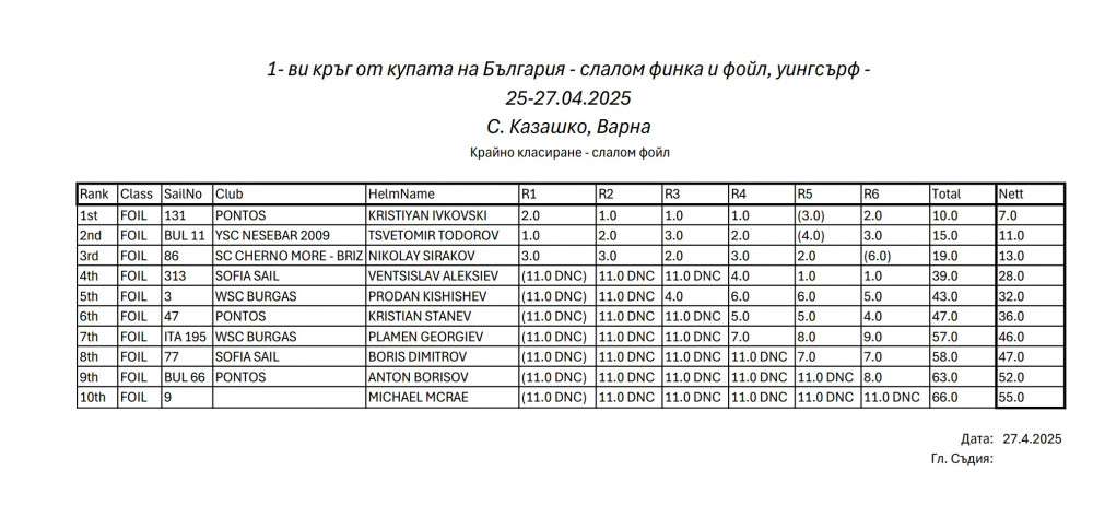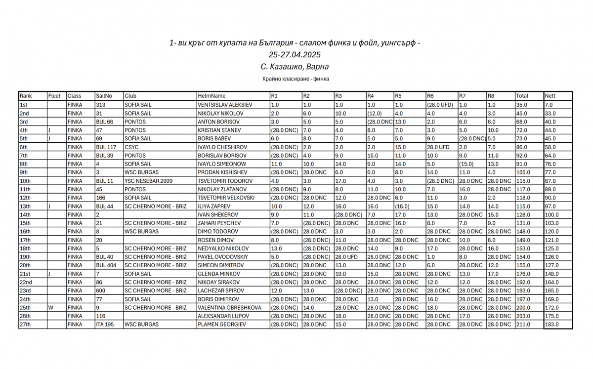 На 25-27 април на спота в с.Казашко, Варна се организира първият за България кръг от общо четири запланирани по Уиндсърф. Участници имаше от цяла България.